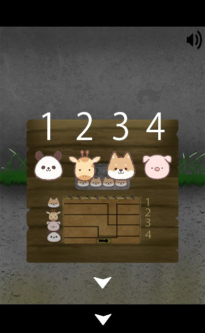 「メモ帳」をセットして、右の数字の順で線で繋がる動物を確認。