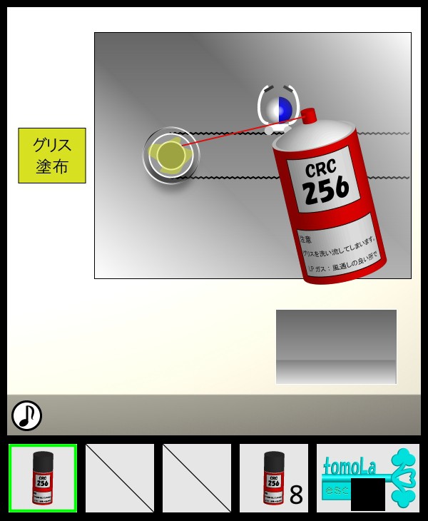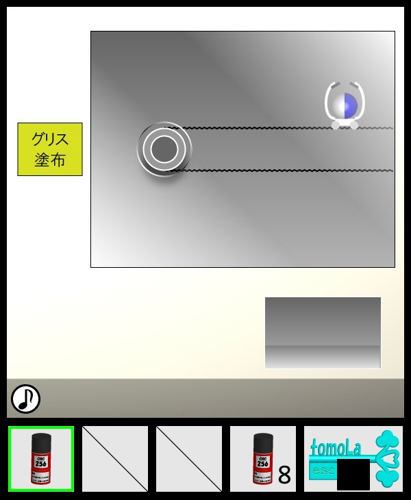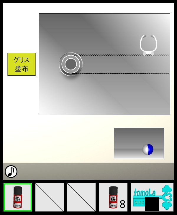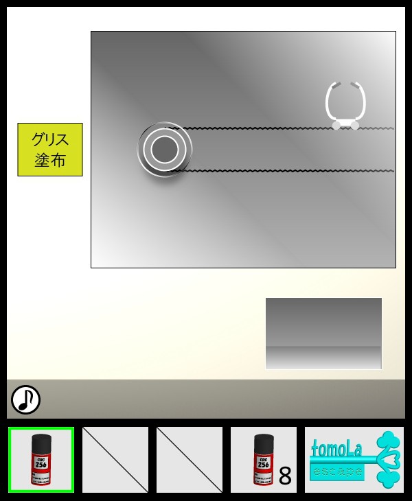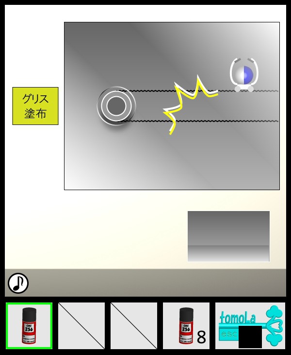 右の装置を拡大して、鍵のパーツが上まで来るのを待ってから滑車に「潤滑剤」を使う。
