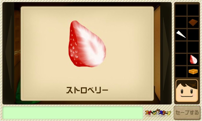 左に移動して、壁の右下から「ストロベリー」を入手。