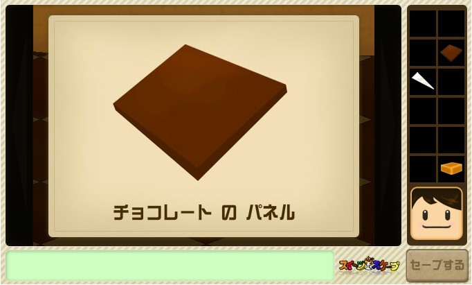 中央の床を調べて、「チョコレートのパネル」を入手。