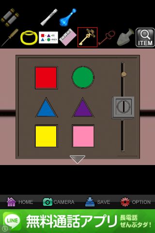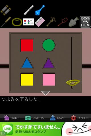 つまみを下ろして、「メモ」のとおりに『赤い四角、紫の三角』を押す。