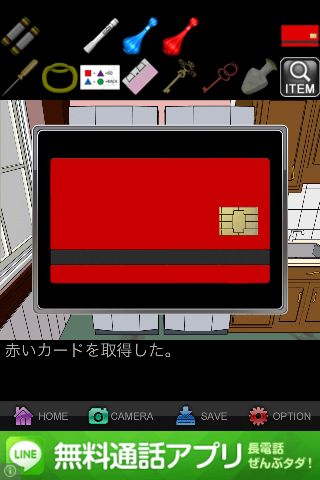 左の扉を開けて、「赤いカード」を入手。