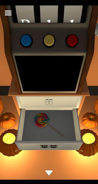 スロットマシンの棚の下の引き出しを拡大して、『左上、右下、右上、左下』の順で押す。