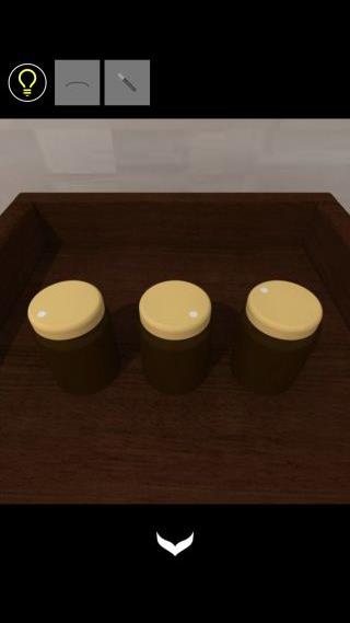 棚の上のビンを拡大して、フタの白丸の位置『左下、右下、左上』を確認。