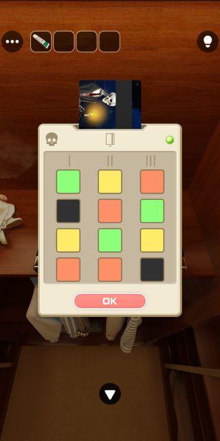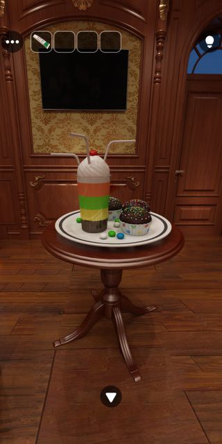 ここのヒントは、室内にある3つのドリンクの色の並びになる。