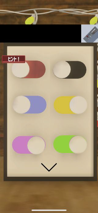 右上の装置を拡大して、『赤=左、黄=右、黒=左、紫=右、青=左、緑=右』に合わせる。