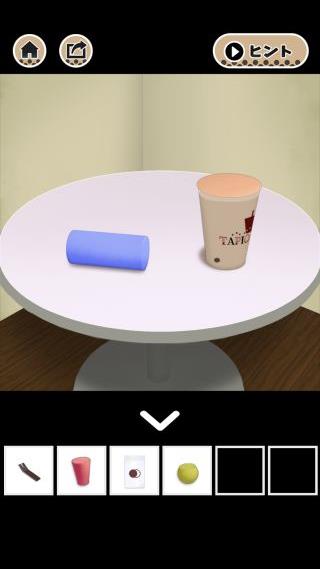 床から「黄色いグラス」を入手して、左のタピオカミルクティーの置物を拡大。