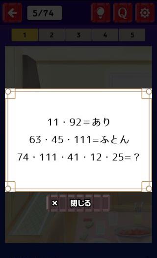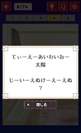 ひらめきナゾトキ脱出 無料 1.3 評価する 送信する MASK APP LLC Stage.02 1R 1 2 3 4 5 Stage.01 和室 Stage.02 1R Stage.03 ダイニング Stage.04 リビング Stage.05 デート Stage.06 ある部屋 Stage.07 洋菓子店 Stage.08 ウッドスタイルの部屋 Stage.09 体育館 Stage.10 教室 Stage.11 ダイニング Stage.12 カフェ Stage.13 旅館 Stage.14 ケーキ屋 Stage.15 カフェ
