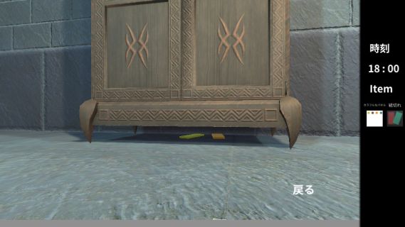 左上の棚を調べて、「紙切れ」を入手。