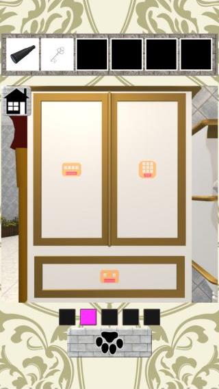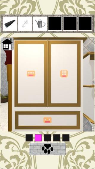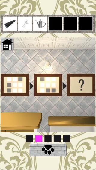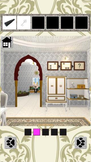 上の3枚の額を拡大して、図形の並びが反時計回りに移動しているのを確認。