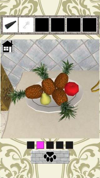 右にあるフルーツを拡大して、『パイナップル=4、洋梨=1、リンゴ=1』を確認。