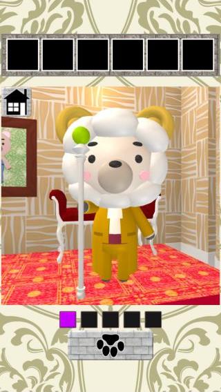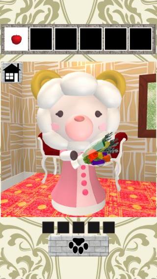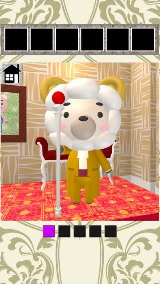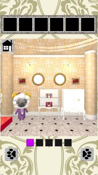 脱出ゲーム Sheep Palace 無料 2.4 評価する 送信する NAZOKOI 攻略その2 左の羊を拡大して、「リンゴ」を渡す。 「ベル」を入手して、右の羊を拡大。 タップして変わる杖の色を確認。 『赤、緑、紫、オレンジ』となる。 右に移動して、中央の棚を拡大。 下の箱を拡大。 『赤、緑、紫、オレンジ』に合わせて開ける。 1つ目の部屋(左上) 攻略その1 攻略その2 攻略その3 攻略その4 攻略その5 攻略その6 2つ目の部屋(右上) 攻略その1 攻略その2 攻略その3 攻略その4 攻略その5 攻略その6 3つ目の部屋(左下) 攻略その1 攻略その2 攻略その3 攻略その4 攻略その5 攻略その6 4つ目の部屋(右下) 攻略その1 攻略その2 攻略その3 攻略その4 攻略その5 攻略その6