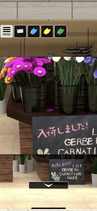 無料 評価する 送信する 箱を開けるアイテムの場所 カウンターすぐ右の鉢から「青いボタン」を入手。 中央の棚の上から「黄色いボタン」を入手。 棚の右の床に置いてある鉢から「緑のボタン」を入手。 右の『入荷しました』の看板の上を調べて、「紫のボタン」を入手。 花の選び方 箱を開けるアイテムの場所 箱の開け方 部屋番号の調べ方 エレベーターの動かし方 案内板の汚れの落とし方 母の病室の場所 非常階段の扉の開け方 薬品倉庫の開け方 薬品棚の鍵の場所 駐車料金精算機の解き方 テレビのつけ方 箱の開け方 ガラス戸の鍵の場所 スツールの開け方 照明の点け方 露天風呂のお湯の出し方 テレビの下の引き出しの開け方 冷蔵庫の開け方 ポットの開け方 マッチを使うアイテムの場所 ポットの上の壁の装置の解き方 寝室の引き出しの開け方 ポットの上の壁の装置の解き方(2回目) 電話機の謎の解き方 シャンパンをセットするまで ポットの棚の上の引き出しの開け方 ポットの棚の下の引き出しの開け方 寝室の左の引き出しの開け方 時計の謎の解き方 寝室の右の棚の開け方 メモの謎の解き方 寝室の右の引き出しの開け方 寝室の左の棚の開け方 スツールの開け方 ベッドの間の装置の解き方 ボックスの開け方と中身 和綴じの写本2の入手方法 和綴じの写本3の入手方法 和綴じの写本4の入手方法 和綴じの写本5の入手方法 和綴じの写本6の入手方法 和綴じの写本7の入手方法 明るくする方法 厨子の南京錠の開け方 厨子の左上の箱の開け方 厨子の中の右の箱の開け方 廊下の奥の扉の開け方 厨子の中の左の箱の開け方 巻物の開き方 最後の装置の解き方 キーボックスの開け方 管理室の調べ方 ブレーカーの上げ方 ロッカーの開け方 カラーコーンの奥への進み方 工具箱の開け方 エレベーター前の扉の開け方 最後の扉の開け方 形代2の入手方法 形代3の入手方法 形代4の入手方法 形代5の入手方法 形代6の入手方法 形代7の入手方法 形代8の入手方法