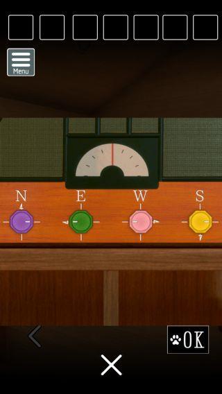 先ほどのカップと、隣の部屋の棚にあったカップをヒントに『紫=右、緑=左、ピンク=左、黄=右』に合わせる。