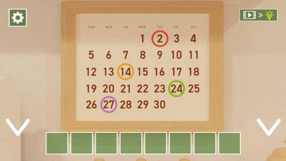 右の壁にあるカレンダーで、同じ色の○の日付から取っ手の方向にある日付を抜き出していく。