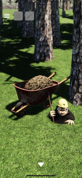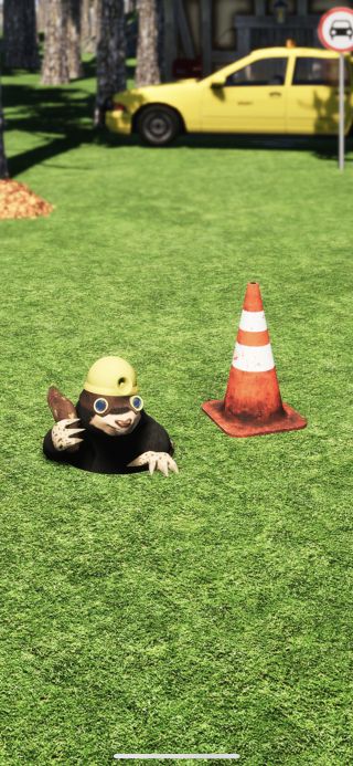 カラーコーンのそばに出てきたモグラに「焼き芋」を渡す。