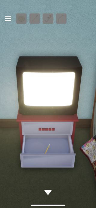 ベッドのそばのギターに「ニッパー」を使って、「弦」を入手。