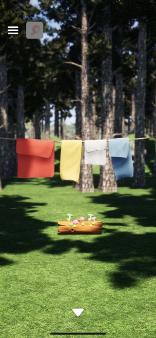 奥の洗濯物の下を調べて、3色のキノコの数を確認。