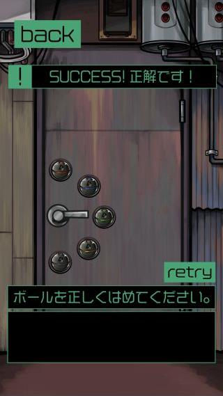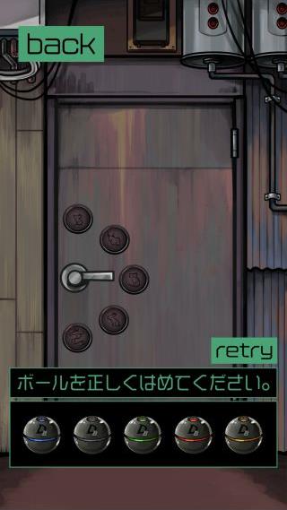 脱出ゲーム 電脳街からの脱出 無料 2.6 評価する 送信する Eureka Studio Stage.8 路地裏に移動。 壁の汚れを調べて、『赤青緑黄黒』を確認。 扉前に戻る。 扉を調べて、5つの「データボール」を上から『赤青緑黄黒』の順ではめる。 (データボールはドラッグで穴にはめていく。) Stage.1 Stage.2 Stage.3 Stage.4 Stage.5 Stage.6 Stage.7 Stage.8