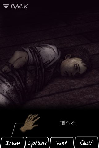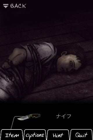 「ナイフ」で男の縄を切る。
