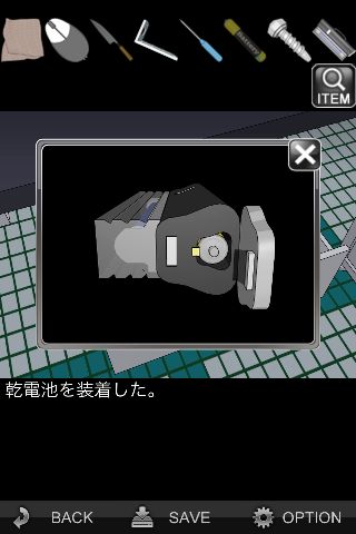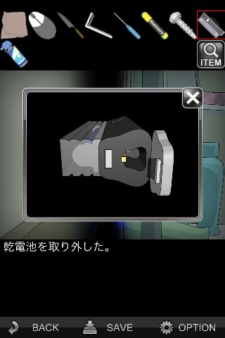 「ブラックライト」から「乾電池」を取り出して、「マウス」に入れる。