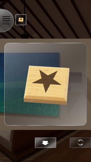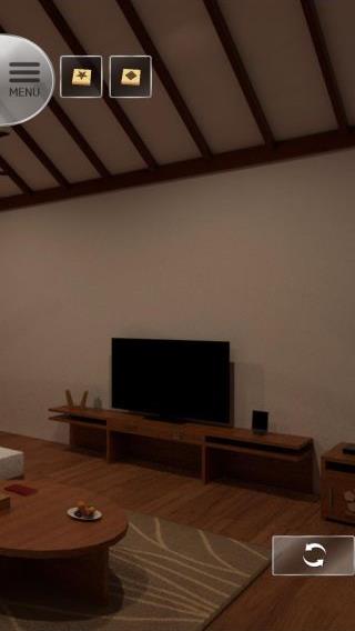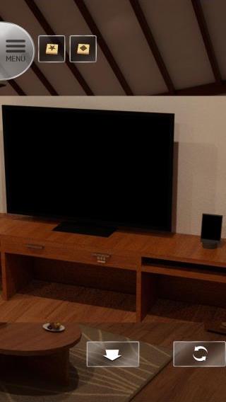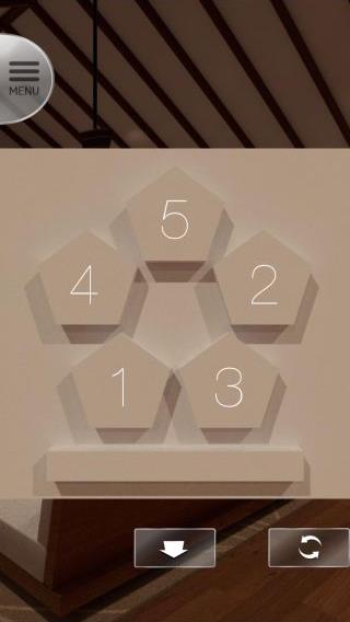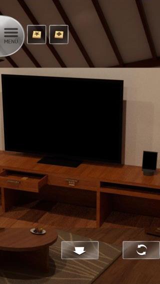 無料 評価する 送信する 3つのボタンの場所 天井のファンを拡大して、線の数『上=5、左上=4、右上=2、左下=1、右下=3』を確認。 壁の絵を拡大して、動かす。 『上=5、左上=4、右上=2、左下=1、右下=3』に合わせる。 「★のボタン」を入手。 反対側に移動して、左のクローゼットを拡大。 扉を開けて、「◆のボタン」を入手。 右のテレビを拡大。 テレビ台の左の引き出しを開けて、「●のボタン」を入手。 3つのボタンの場所