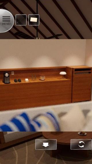 無料 評価する 送信する 冷蔵庫の開け方 部屋の後ろのパントリーを拡大。 右の扉を開ける。 上の左右対称の絵が描かれているのを確認。 「絵ハガキ」の裏に書かれていた『MALDIVES』の文字の中から左右対称の文字『MAIV』に合わせる。 中から「水」を入手。 冷蔵庫の開け方