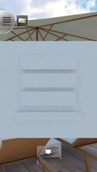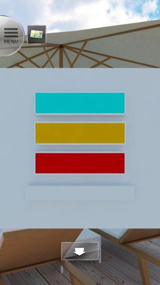 無料 評価する 送信する プールの右の柱の解き方 プールの左にあるテーブルの前へ。 テーブルの上のカクテルを拡大して、『水色、オレンジ、赤』を確認。 右奥へ。 プールの右の柱を拡大。 上から『水色、オレンジ、赤』に合わせる。 「浮き輪」を入手。 プールの右の柱の解き方