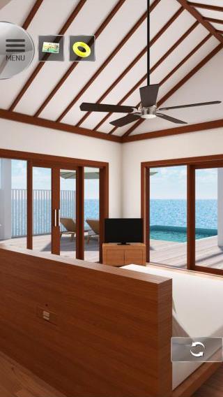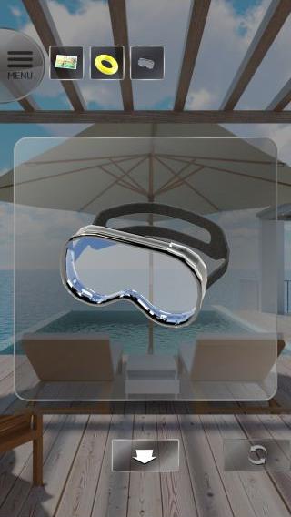 無料 評価する 送信する ビーチベッドの謎の解き方 ベッドルームの反対側に移動して、左にスクロールさせる。 扉のロックを拡大。 ロックを外すと、リビングと行き来できるようになる。 テレビを拡大。 右のタブレットを起動して、下のボタンを押す。 シャッターが下りたら、ベッドルームから外に出てシャッターの裏を調べる。 鳥の向きが『左左右左右右左』となる。 ビーチベッドを拡大して、左右のマットを『左左右左右右左』の順で動かす。 引き出しの中から「ゴーグル」を入手。 ビーチベッドの謎の解き方