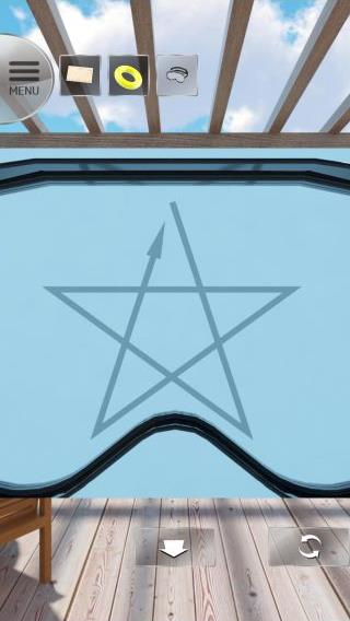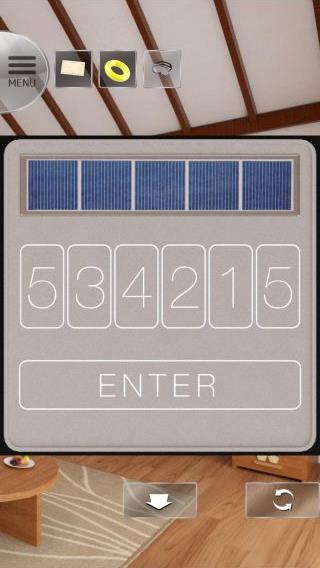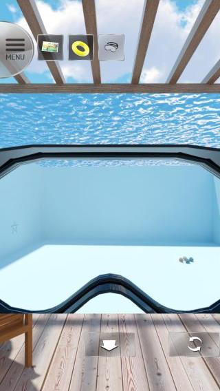 無料 評価する 送信する テレビのリモコンの入手方法 プールを拡大して、「ゴーグル」を使って潜る。 左の壁の矢印の順『上、右下、左上、右上、左下、上』を確認。 その順番でリビングのファンの線の数が『534215』となる。 リビングのテレビを拡大。 右のタブレットを起動して、上のボタンを押してシャッターを上げる。 右の棚を拡大。 上の箱を拡大。 装置を起動して、『534215』に合わせる。 (シャッターを上げていないと起動しないので注意。) 中から「リモコン」を入手。 テレビのリモコンの入手方法