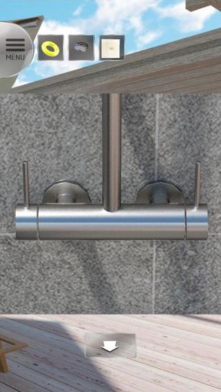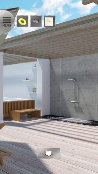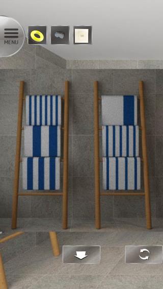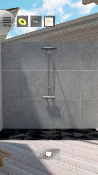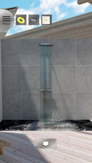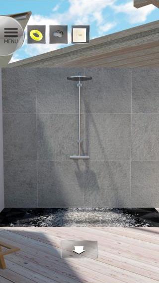 無料 評価する 送信する シャワーの謎 バスルームの反対側に移動して、左にスクロールさせる。 左のタオル掛けに「バスタオル」を掛ける。 ラインの数の順で『右左左右右左』となるのを確認。 外のシャワーの前へ。 下のツマミを『右左左右右左』の順で動かす。 砂が流れて、下のタイルの模様が見えるようになる。 シャワーの謎