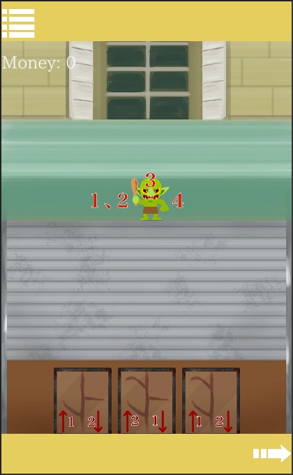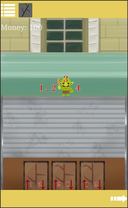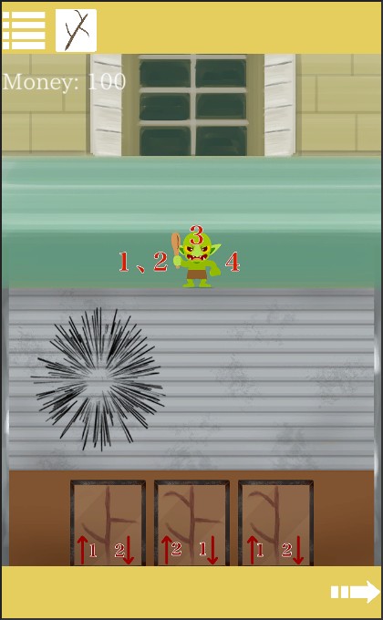 先ほどの数字と絵をヒントに、「剣」を装備して『左下、左下、頭、右下』の順で叩く。