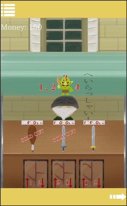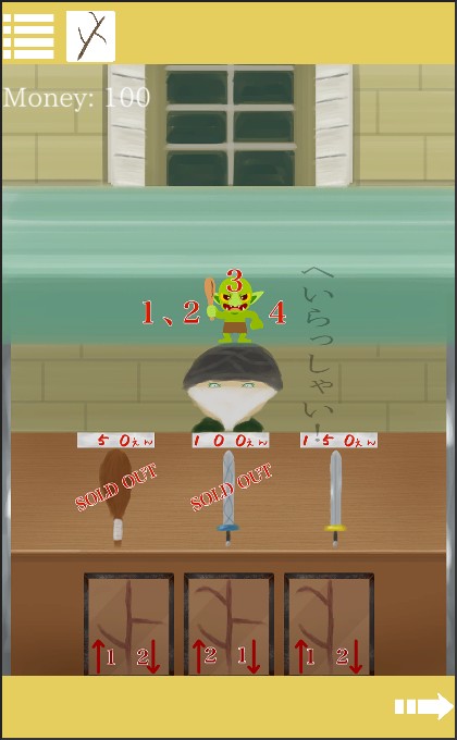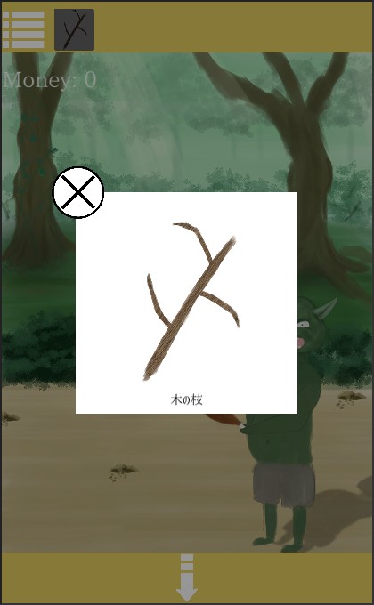 店主に「木の枝」を売って、「50円」を入手。