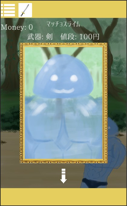現れたマッチョスライムに「剣」を使って、クリア。