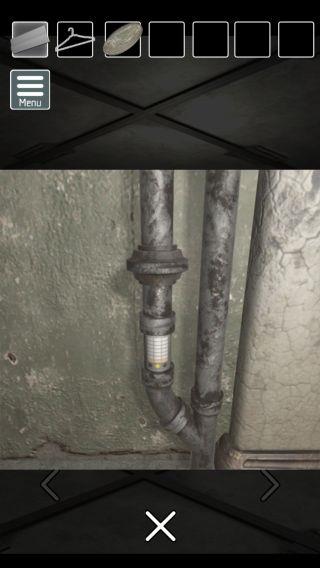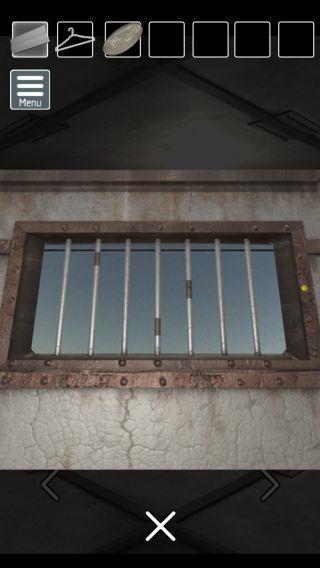 上の鉄格子を調べて、右の中央に黄色いネジがあるのを確認。