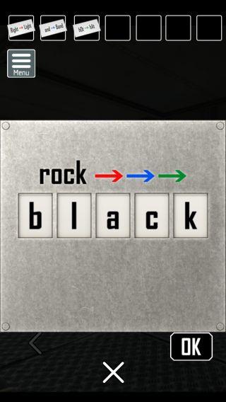 3枚の「矢印が書かれた紙」をヒントに、『rock』の文字を変化させていく。