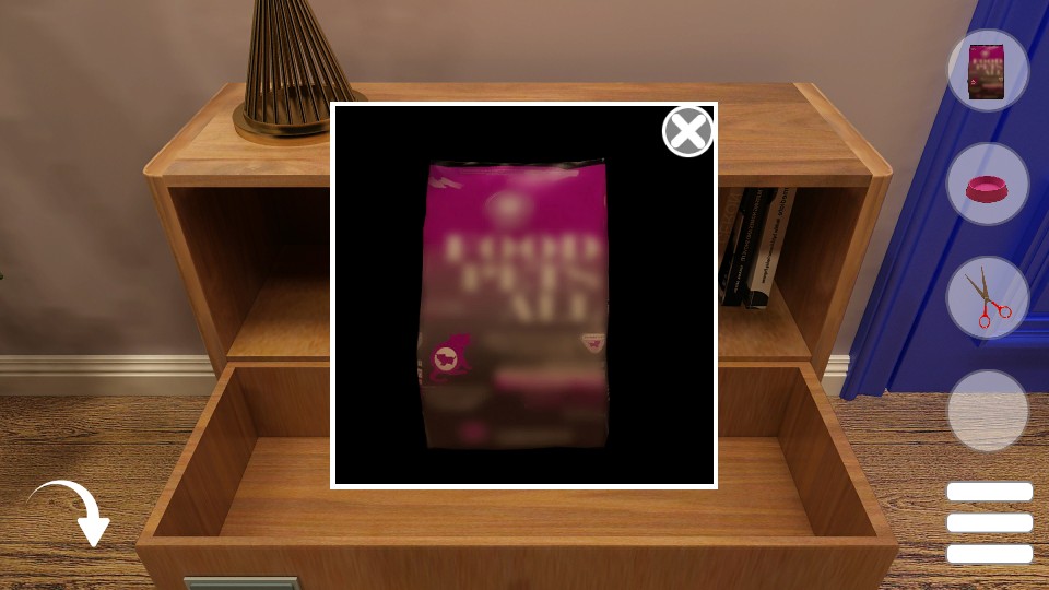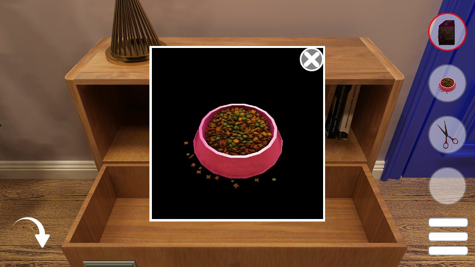 「エサ皿」を拡大して、「猫の餌」を入れる。