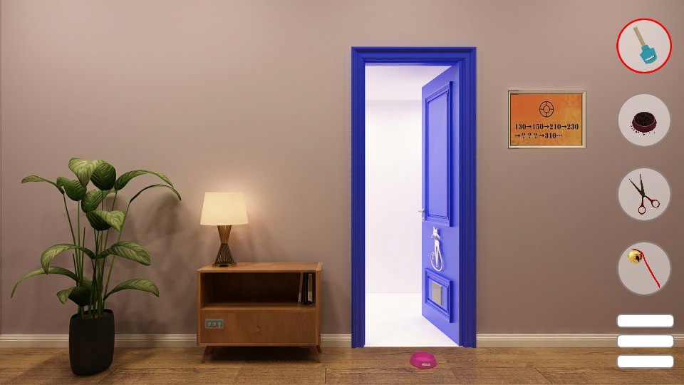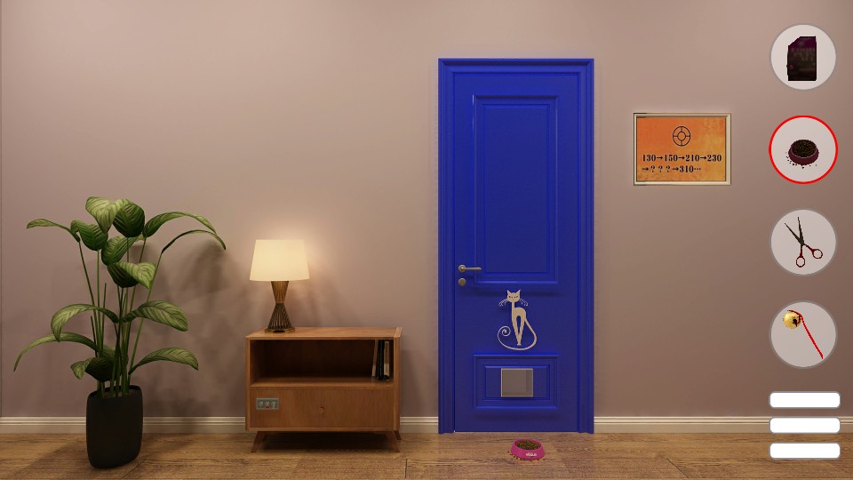 扉の下に「エサ皿」を置いて、「鈴」を使う。