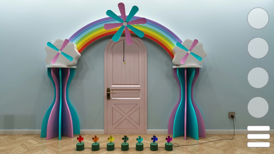 脱出ゲーム Lock 無料 2.8 評価する 送信する SpiceApp Studios Inc.(Gotmail.jp) STAGE 16 右下のコンセントを拡大。 上の虹の色の配置を確認して、下の風車を拡大。 左から『赤、オレンジ、黄、緑、水色、青、紫』に合わせる。 下りてきた「カギ」を入手。 扉に「カギ」を使って開ける。 STAGE 1 STAGE 2 STAGE 3 STAGE 4 STAGE 5 STAGE 6 STAGE 7 STAGE 8 STAGE 9 STAGE 10 STAGE 11 STAGE 12 STAGE 13 STAGE 14 STAGE 15 STAGE 16