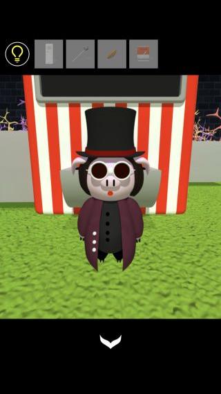 左奥のブタの前へ。