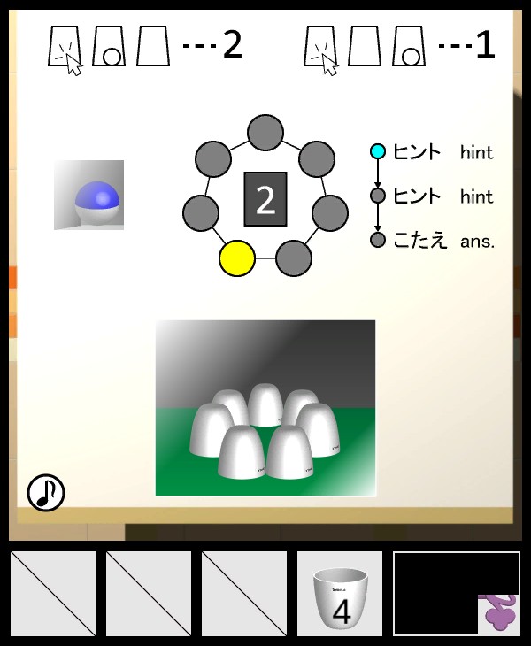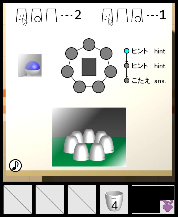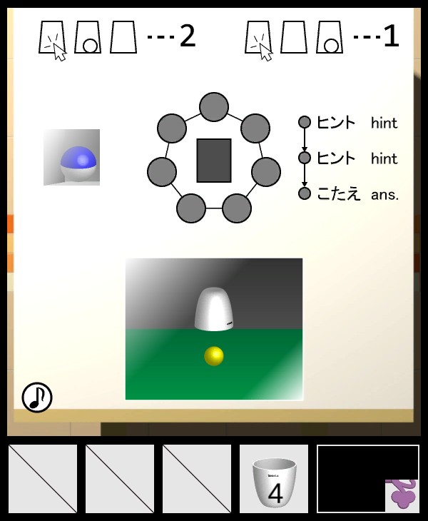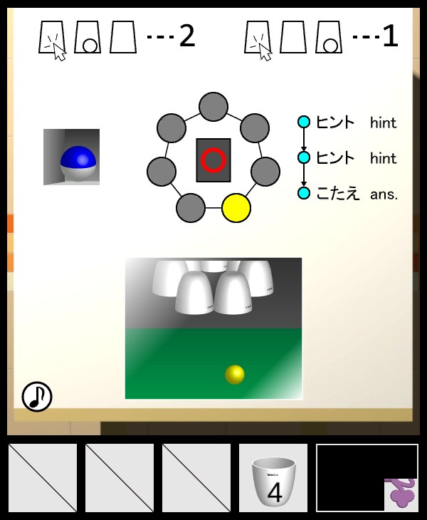 正解の場所はランダムで、2回のヒントを得てから正解の場所を探す。