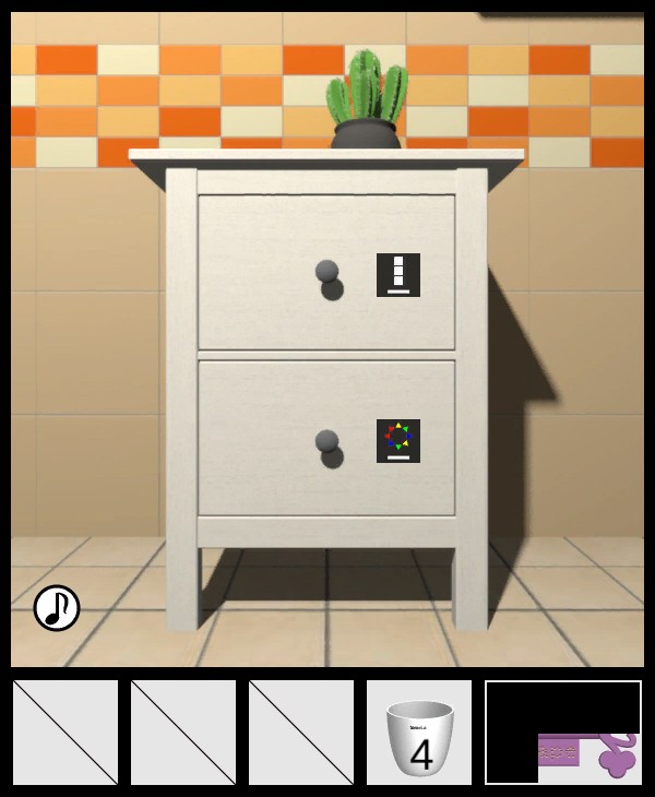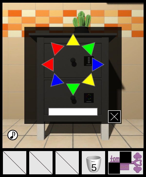 下の引き出しを拡大して、『緑(右上)、黄(上)、青(左下)、赤(左)、赤(左)、青(左下)、黄(上)、緑(右上)』の順で押す。