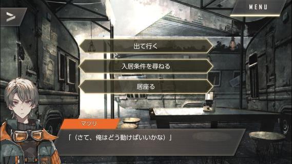 ウーユリーフの処方箋 - 脱出・推理ゲーム 無料 4.2 評価する 送信する SEEC Inc. 03 新人お披露目 選択肢は『入居条件を尋ねる』か、『居座る』を選択する。 『出て行く』を選択すると、ゲームオーバールートのSTAGE 02-04『まちぼうけ』、STAGE 02-05『8月32日』へ進む。 STAGE 01 開幕 06 通行証 08 第2イケメンと遭遇 STAGE 02 候補者 03 新人お披露目 06 おでかけ 07 ロビー 08 食堂 10 がんじがらめ 14 カナタ捜索 15 モニター 16 友喜と円果 17 歯車 19 ほぼ丸腰 STAGE 03 アタシは友達 03 10階へ行こう 05 新作会議 09 職場のロボット関係 10 終わりかけ 12 用済み置き場 14 ロボットを起こそう 15 金庫オープン 16 かくれんぼ