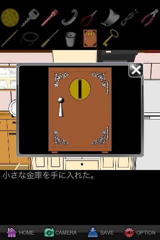 手前に戻って「アロマキャンドル」を調べると、火が消えているので「小さな金庫」を入手。