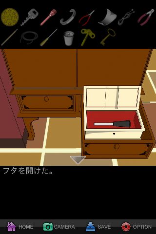 右の引き出しを開けて、中のオルゴールに「ねじ巻き」を使う。