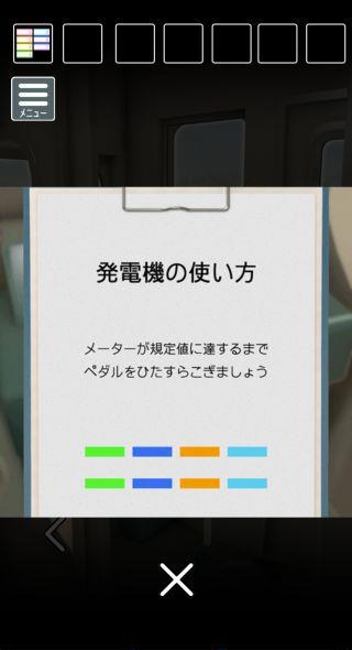 発電機の使い方を調べて、下の『緑、青、オレンジ、水色』を確認。