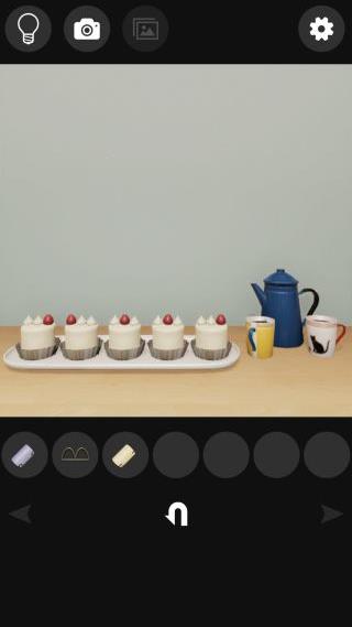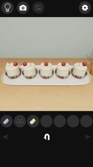 棚の上のケーキを拡大して、イチゴの位置が左から『右左中中右』なのを確認。