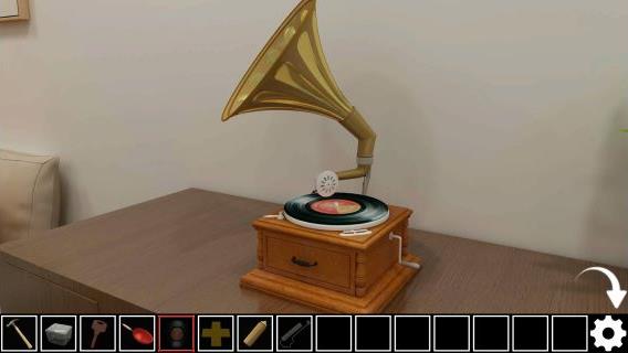 上の蓄音機に「レコード」をセットする。