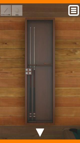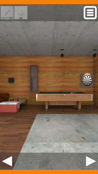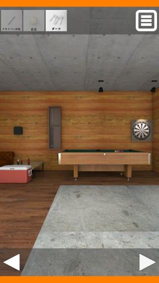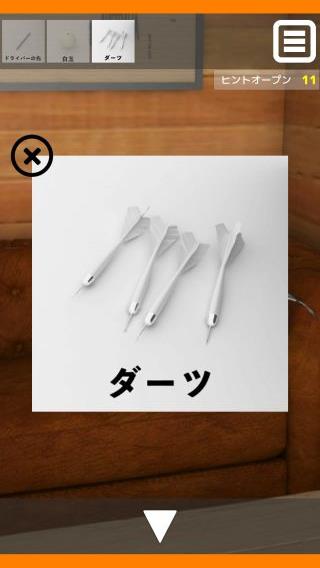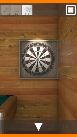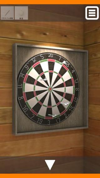 右の壁のダーツボードを拡大して、「ダーツ」を使う。