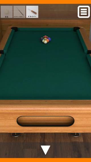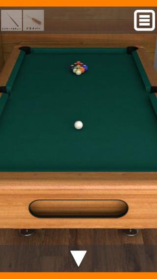 「白玉」を置いて、「ビリヤードのキュー」を使う。